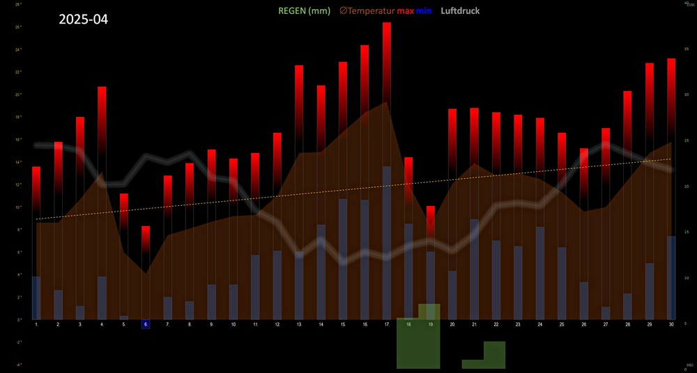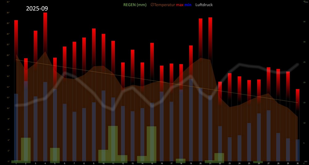 m über NN... Wetter in 16341 Panketal-Zepernick (bei Berlin) - dargestellt jeweils als Entwicklung über den Monat. Es geht hier nur um Entwicklungen, Werte (zum Nachlesen) stehen ja bei den einschlägigen Diensten!